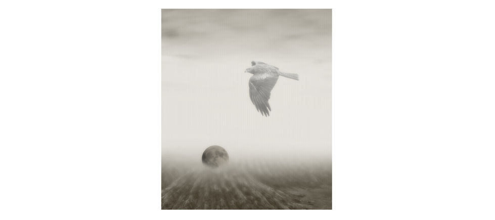 This eerie design was inspired by an artist named Parkeharrison in which this collage was created in Photoshop, using three different elements as a result of a single image manipulation. One image is a majestic eagle that soars over the second element of an orb in which are surrounded the third element in a strong fog environment.